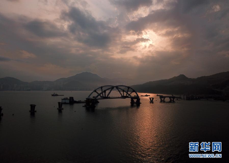 這是準備安裝的香港將軍澳大橋主橋(2月25日攝)。新華社記者 李鋼攝