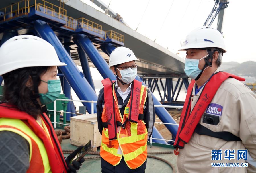 特區行政長官林鄭月娥于2月25日和特區政府運輸及房屋局局長陳帆等一同乘船視察了該工程,并與之合影。在當天的個人社交媒體上,她對這一“超巨型的預制組件”鋼橋表示贊賞,對工程的諸多創新表達期待。