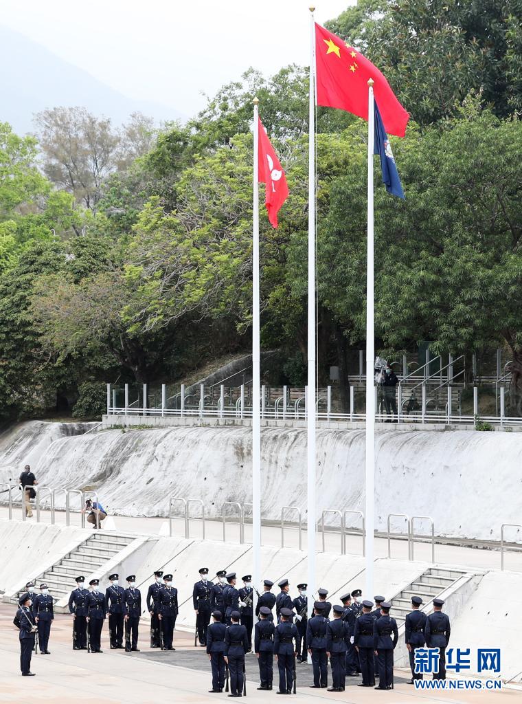 4月15日在香港警察學院拍攝的升旗儀式。新華社記者 李鋼 攝