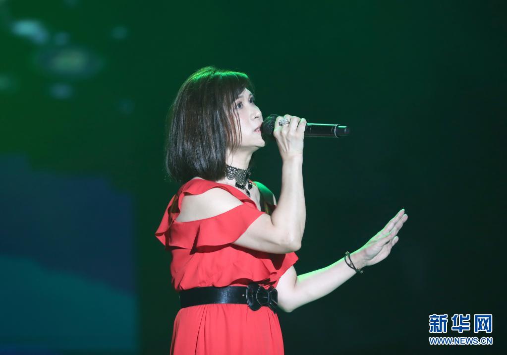 7月3日,歌手在“賀七一·慶回歸”聲動亞洲演唱會上演唱。新華社記者 吳曉初 攝