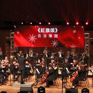 8月14日,香港樂團(tuán)在音樂會(huì)上演奏《紅旗頌》。新華社記者 吳曉初 攝