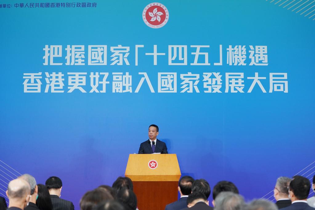 大家上午好。今年5月,林鄭月娥行政長(zhǎng)官給全國(guó)政協(xié)副主席、國(guó)務(wù)院港澳辦主任夏寶龍寫(xiě)信,請(qǐng)求中央派人赴香港給特區(qū)政府、社會(huì)各界講解國(guó)家“十四五”規(guī)劃。中央高度重視行政長(zhǎng)官的這一請(qǐng)求,委派我和國(guó)家發(fā)改委、科技部、人民銀行、國(guó)務(wù)院新聞辦的同事來(lái)香港,和各界朋友交流學(xué)習(xí)國(guó)家“十四五”規(guī)劃的心得體會(huì),一同探討香港如何參與和對(duì)接國(guó)家戰(zhàn)略、如何在融入國(guó)家發(fā)展大局過(guò)程中實(shí)現(xiàn)更好發(fā)展。在此,請(qǐng)?jiān)试S我代表本次宣講團(tuán)對(duì)行政長(zhǎng)官和特區(qū)政府的邀請(qǐng)表示感謝!并轉(zhuǎn)達(dá)夏寶龍主任對(duì)香港各界朋友們的問(wèn)候!