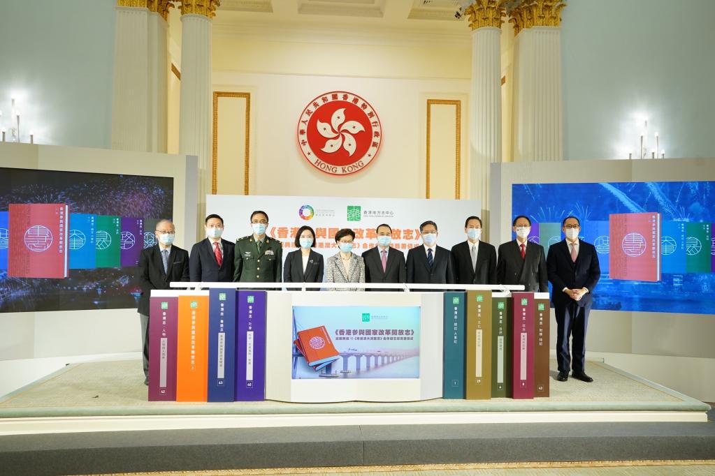 林鄭月娥表示,香港在國家改革開放的過程中,一直以香港所長,貢獻國家所需,與國家同發展、共繁榮,其角色是多元的,是見證者,也是參與者;是貢獻者,也是受惠者。這些現在通過《香港參與國家改革開放志》,可以全方位呈現出來,讓我們的下一代和內地同胞不會忘記香港這個小地方對國家的大貢獻,從而明白香港與國家的發展是休戚與共、息息相關。