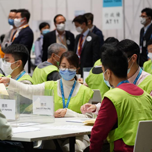 12月19日,香港順利舉行完善選舉制度后首次立法會選舉投票,工作人員點(diǎn)票現(xiàn)場。新華社記者 呂小煒 攝