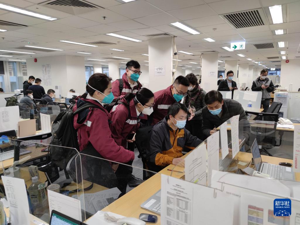 2月19日,內地專家組到訪特區政府衛生署衛生防護中心傳染病處下轄的個案追蹤辦公室。新華社記者 韋驊 攝