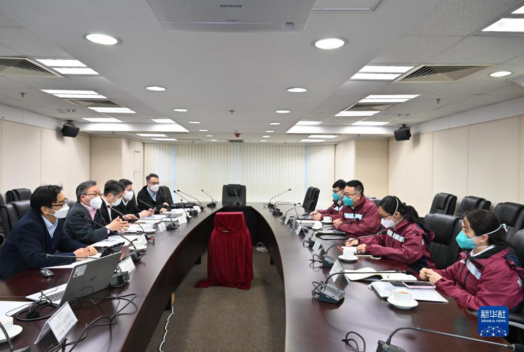 2月19日,內地專家組與特區政府衛生署衛生防護中心人員會面及交流。新華社發(香港特區政府新聞處供圖)