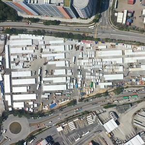 這是2月26日拍攝的香港青衣方艙醫(yī)院項目工地(無人機照片)。新華社發(fā)