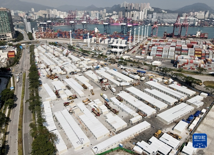 這是2月26日拍攝的香港青衣方艙醫院項目工地(無人機照片)。新華社發