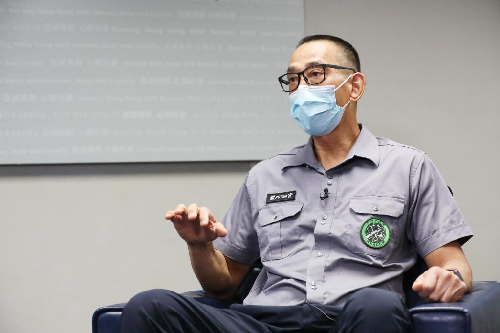 香港警員黃敬慈在接受新華社記者采訪(4月6日攝)。新華社記者 吳曉初 攝