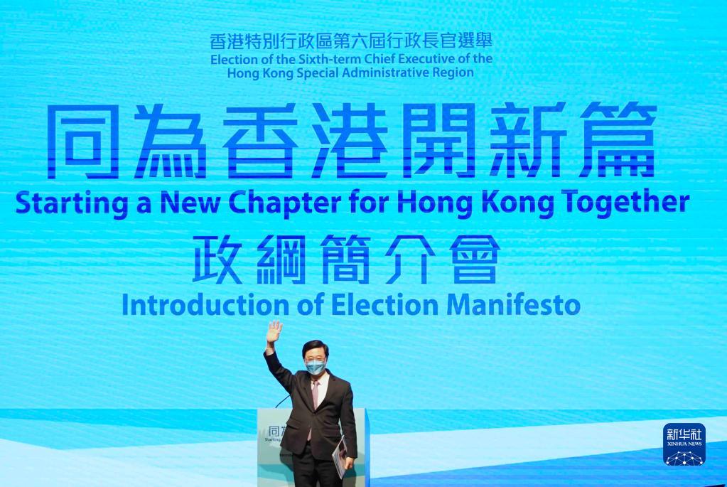 “未來五年,我期望能帶領香港開啟由治及興新篇章。”李家超在競選政綱中提出四大政策綱要,包括:強化政府治理能力,團結一致為民解困;精簡程序多管齊下,提供更多安居之所;全面提升競爭實力,創造持續發展空間;同建關愛共融社會,增加青年上流機會。
