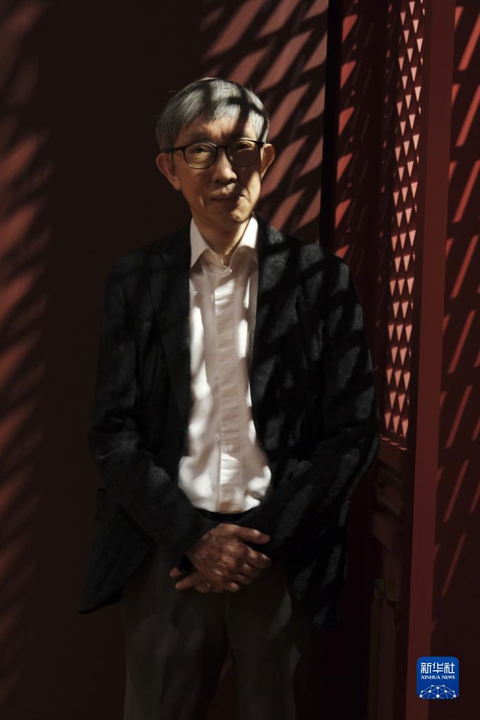 2022年4月28日,香港故宮文化博物館設計師嚴迅奇在展廳內接受新華社記者采訪。 新華社記者 王申 攝