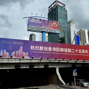 香港西區(qū)隧道的慶祝香港回歸祖國25周年橫幅(6月22日攝)。新華社記者 盧炳輝 攝
