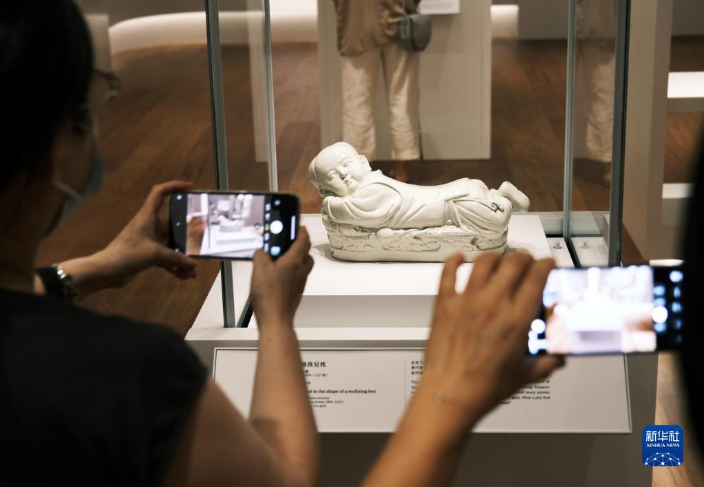 7月3日,參觀者在香港故宮文化博物館展廳內拍攝展品。新華社記者 王申 攝