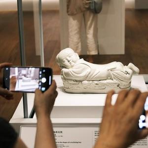 7月3日,人們在香港故宮文化博物館展廳內參觀拍照。新華社記者 王申 攝