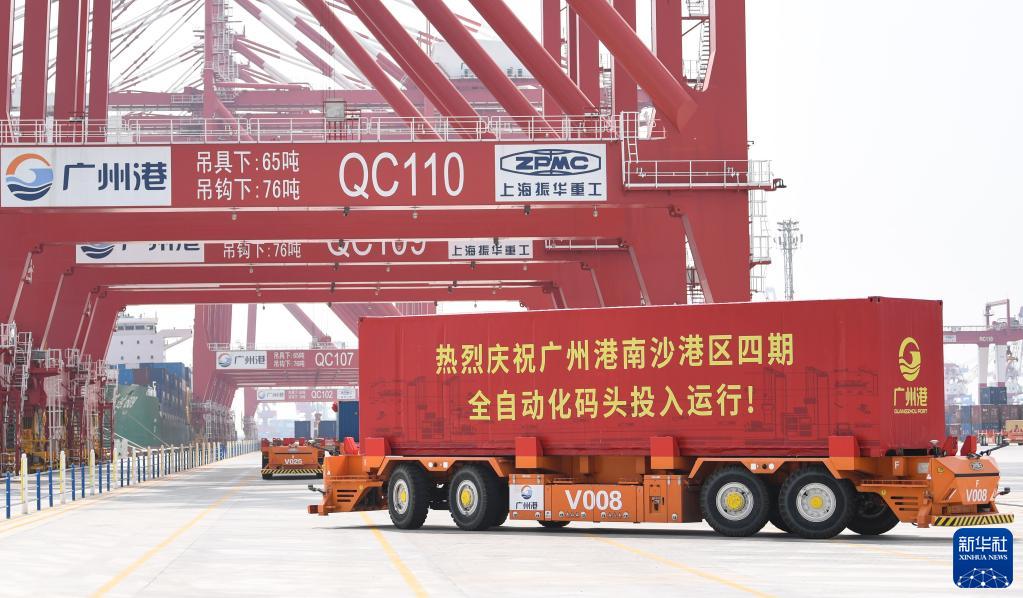 十幾天前,這里迎來新的變化——廣州港南沙港區四期自動化碼頭正式投入運行。偌大的碼頭現場,不見人影移動,只有導引車和吊機在穿梭。