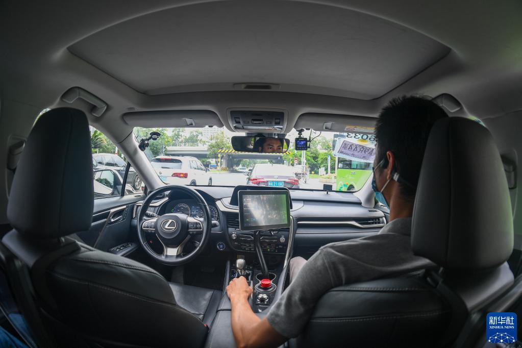 一輛由小馬智行運營的自動駕駛出租車行駛在廣州南沙道路上(2022年6月15日攝)。新華社記者 劉大偉 攝
