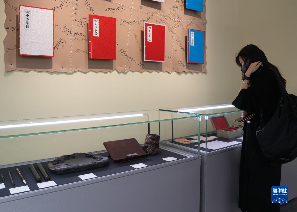 10月28日,觀眾在參觀金庸的文房四寶等展品。新華社記者 劉穎 攝