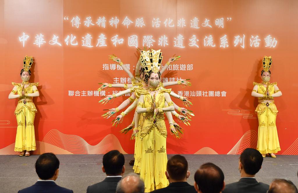 香港特區(qū)政府政務司司長陳國基致辭表示,香港與祖國血脈相連,有12個非遺項目列入國家級非遺代表性項目名錄,涵蓋表演藝術、節(jié)慶活動、自然知識等不同范疇。