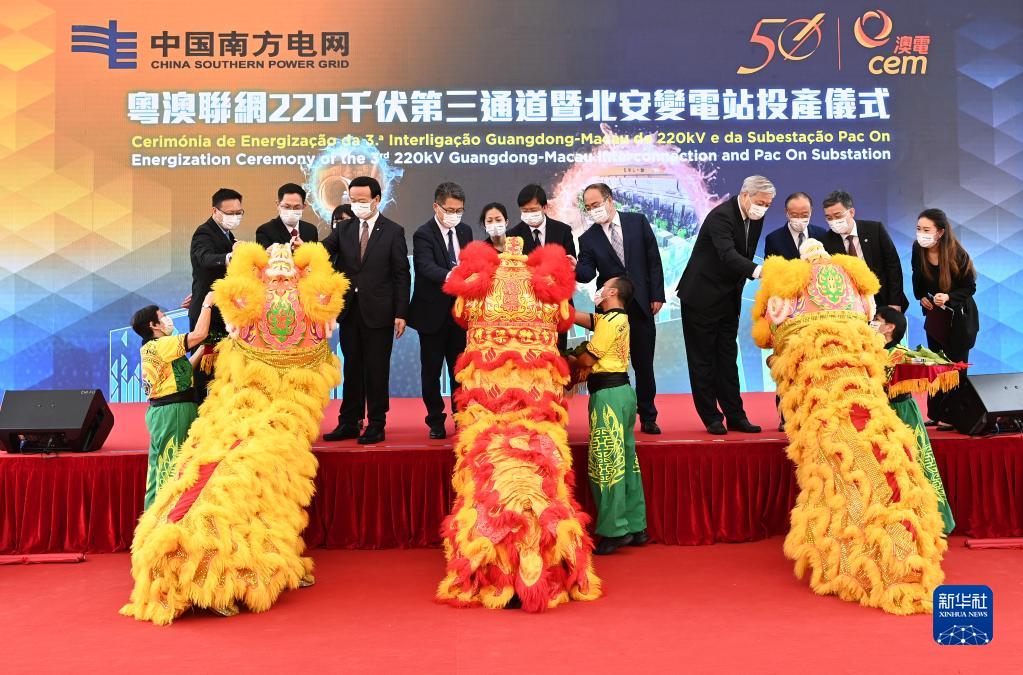 11月25日拍攝的粵澳聯(lián)網(wǎng)220千伏第三通道正式投產(chǎn)儀式現(xiàn)場。 新華社發(fā)(賴增鵬 攝)
