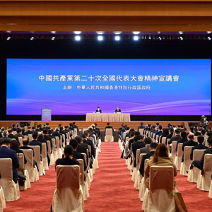 12月3日,中國共產黨第二十次全國代表大會精神宣講會在香港會展中心舉行。新華社記者 陳鐸 攝