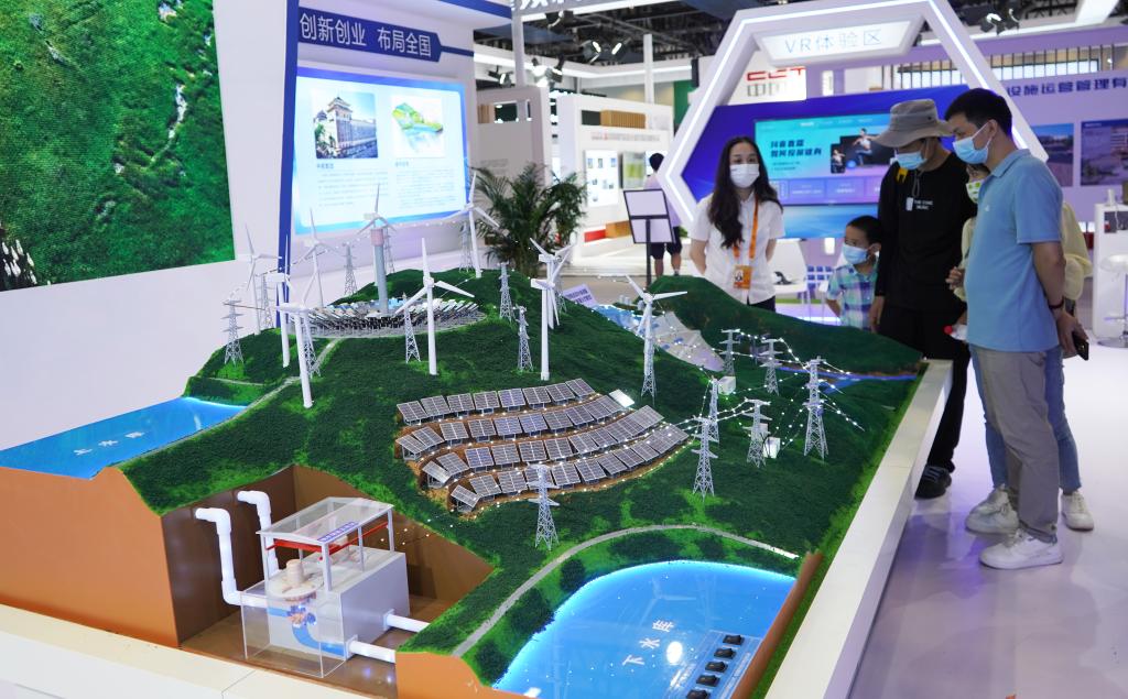 9月3日,觀眾在國家會議中心了解水風光儲多能互補綠色能源技術。2022年中國國際服務貿易交易會于8月31日至9月5日在位于北京的國家會議中心和首鋼園區舉辦,今年更加突出“雙碳”主題。新華社記者 金皓原 攝