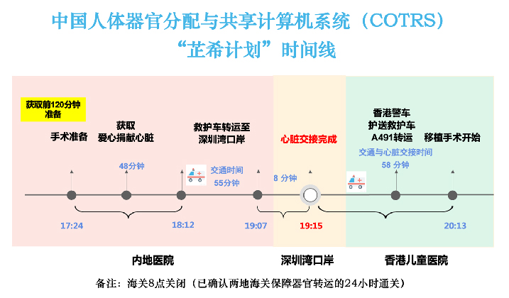 “在COTRS的協調下,內地與香港近24個部門和65位醫療與管理專家在24小時內緊急通力合作,兩地醫療團隊以及深圳與香港海關均進行緊急模擬演練,將通關時間壓縮至8分鐘,與4個小時的心臟保存極限時間賽跑。”王海波介紹,12月16日17時24分開始捐獻心臟獲取,當日20時13分救護車在香港警車護送下將內地愛心捐獻心臟送達香港兒童醫院。12月17日凌晨1時,芷希小朋友的心臟移植手術順利完成,從手術室轉入兒科ICU。截至目前,芷希已不需要體外循環支持。
