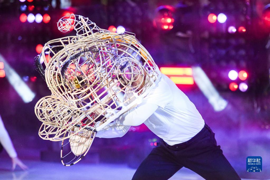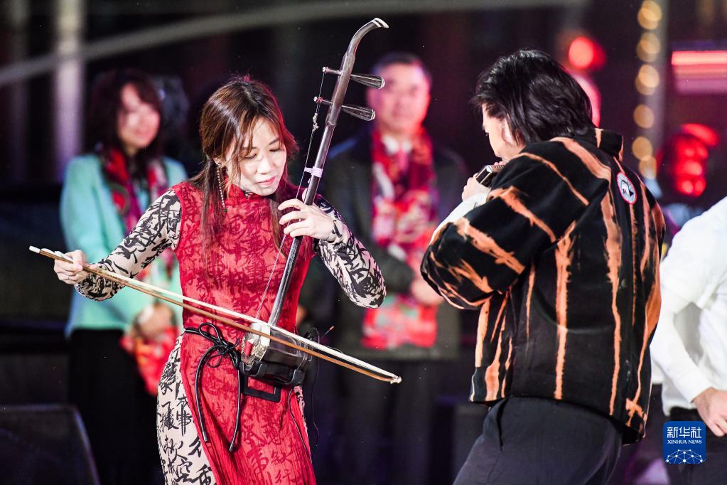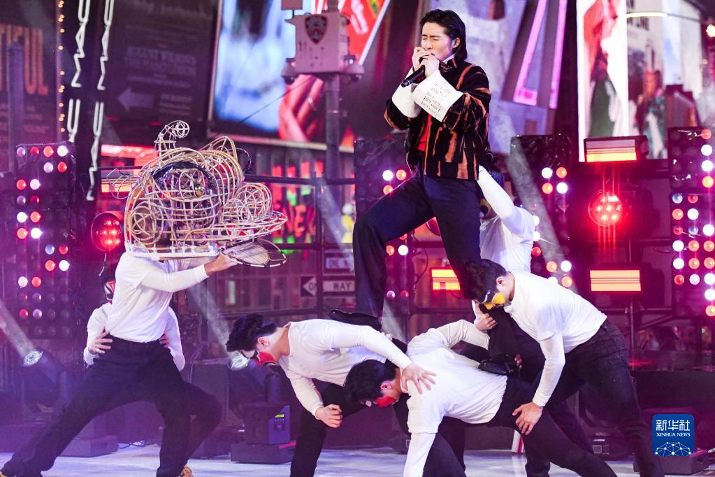 2022年12月31日,在美國紐約時報廣場,來自中國香港的藝術家在跨年倒計時活動上表演。新華社發(朱子于攝)