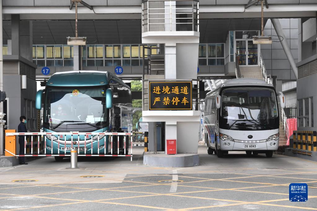 1月8日,跨境大巴經(jīng)深圳灣口岸入境。新華社記者 毛思倩 攝
