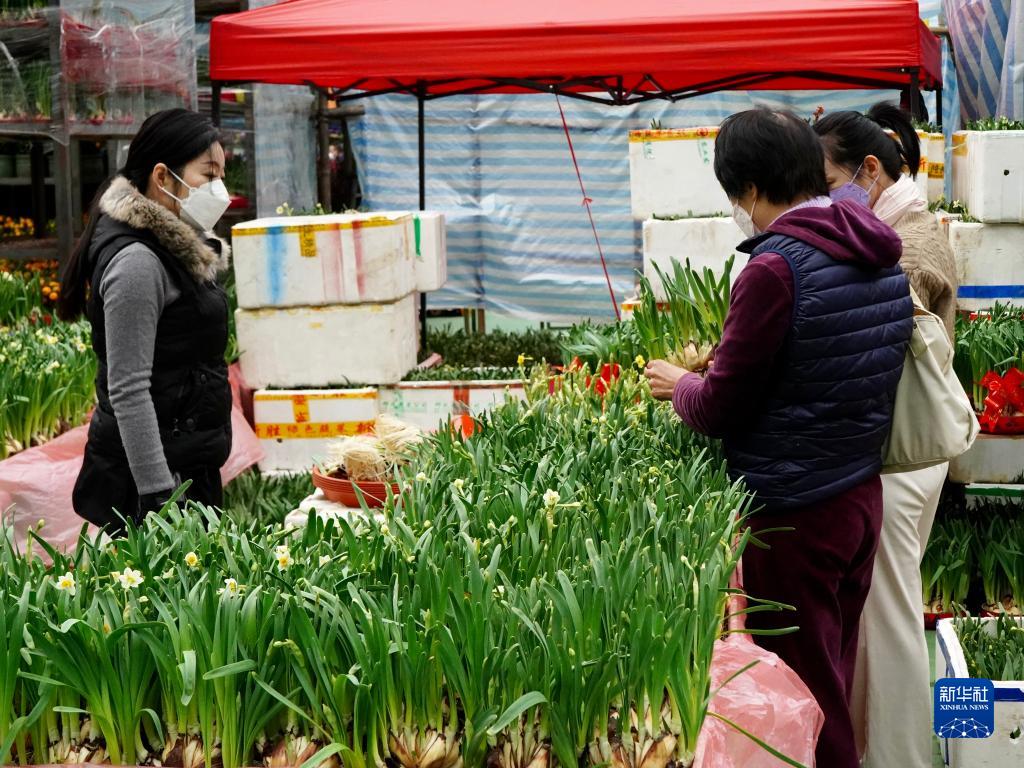 1月16日,在維多利亞公園年宵花市,顧客在選購水仙。新華社記者 褚萌萌 攝