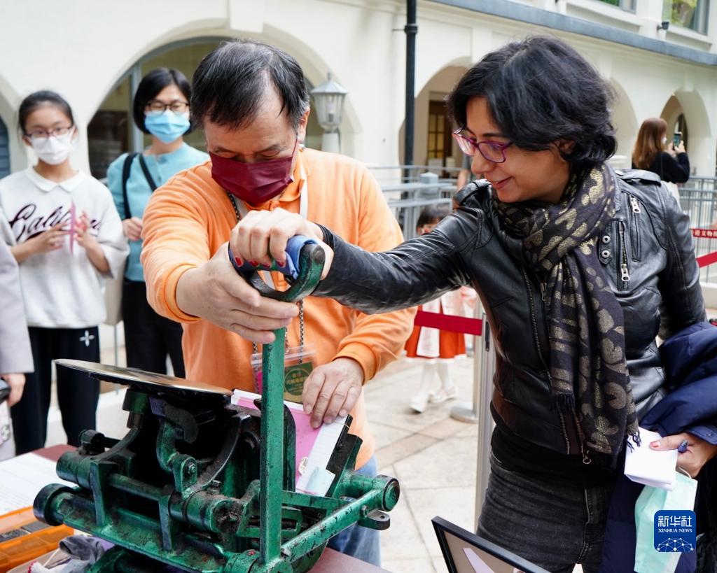 2月5日,在香港文物探知館舉行的“金沙元宵游園會”中,參觀者在體驗用活版印刷制作文物圖案的紀念頁。新華社記者 褚萌萌 攝