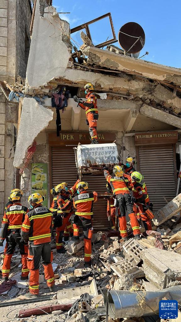 當地時間2月11日,香港特區救援隊在土耳其哈塔伊省地震災區展開搜救行動。新華社發