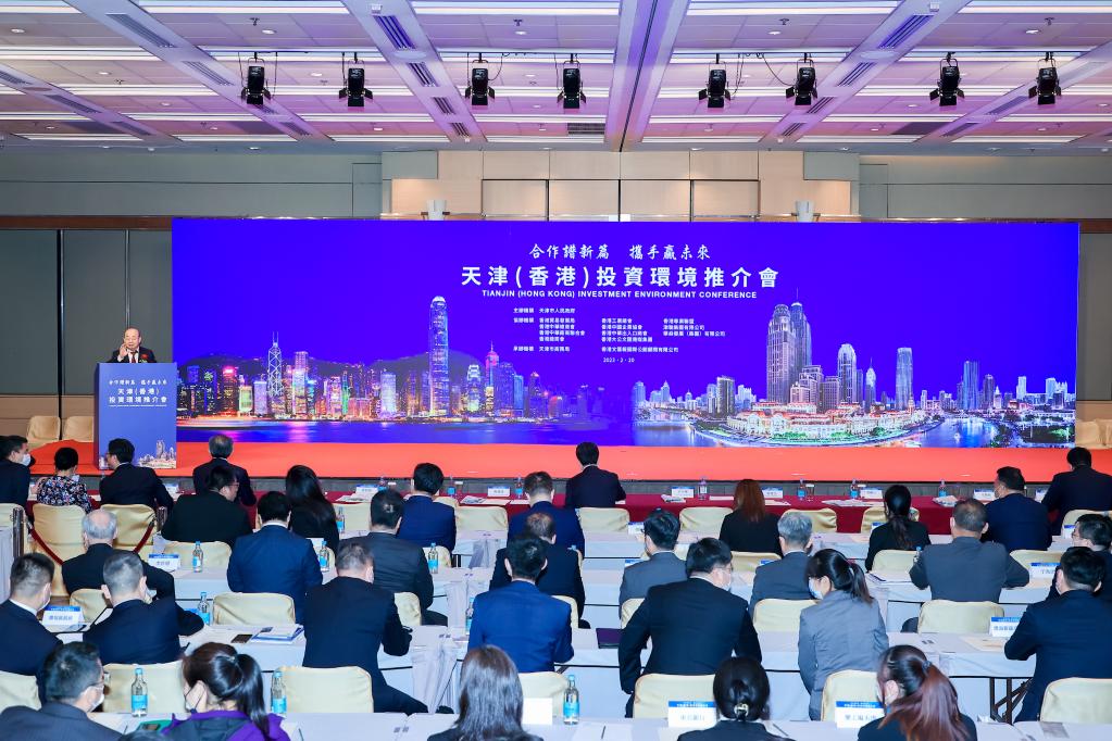 當日,天津市人民政府在香港會展中心舉辦“合作譜新篇 攜手贏未來”——天津(香港)投資環境推介會,旨在推動天津與香港經貿投資合作邁上新臺階。香港工商企業界近300人出席。
