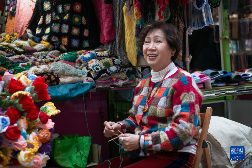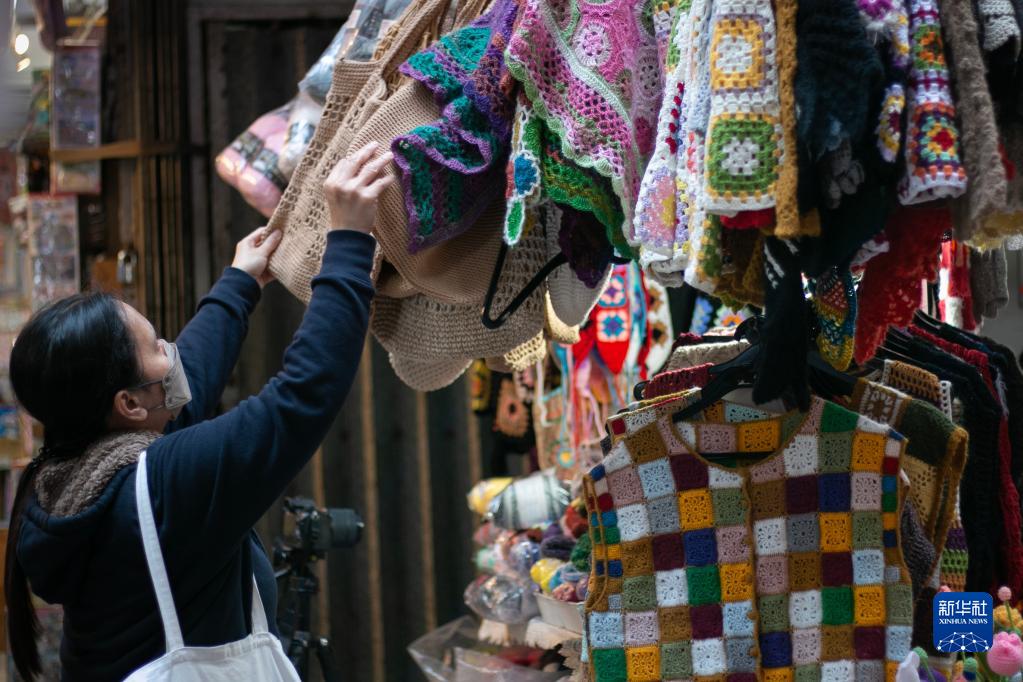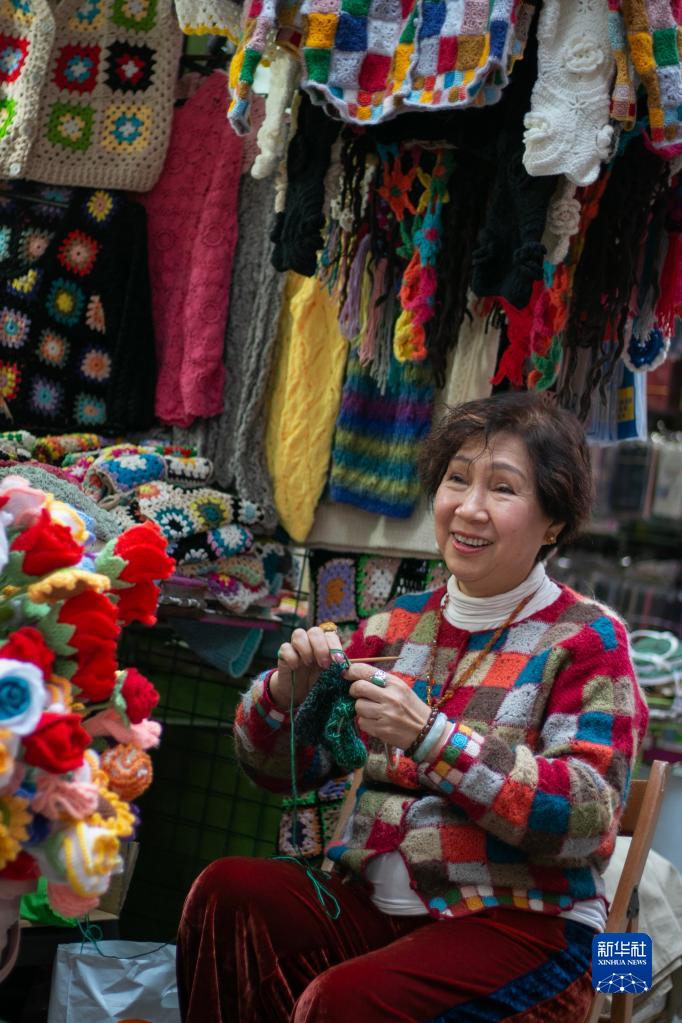 在香港灣仔,太原街露天市集有著超過80年的歷史。走進(jìn)這條長(zhǎng)約250米的小街,濃濃的生活氣息撲面而來。在街道兩旁眾多鐵皮攤位中,一間掛著琳瑯滿目毛衣毛線制品的攤位格外引人注目。