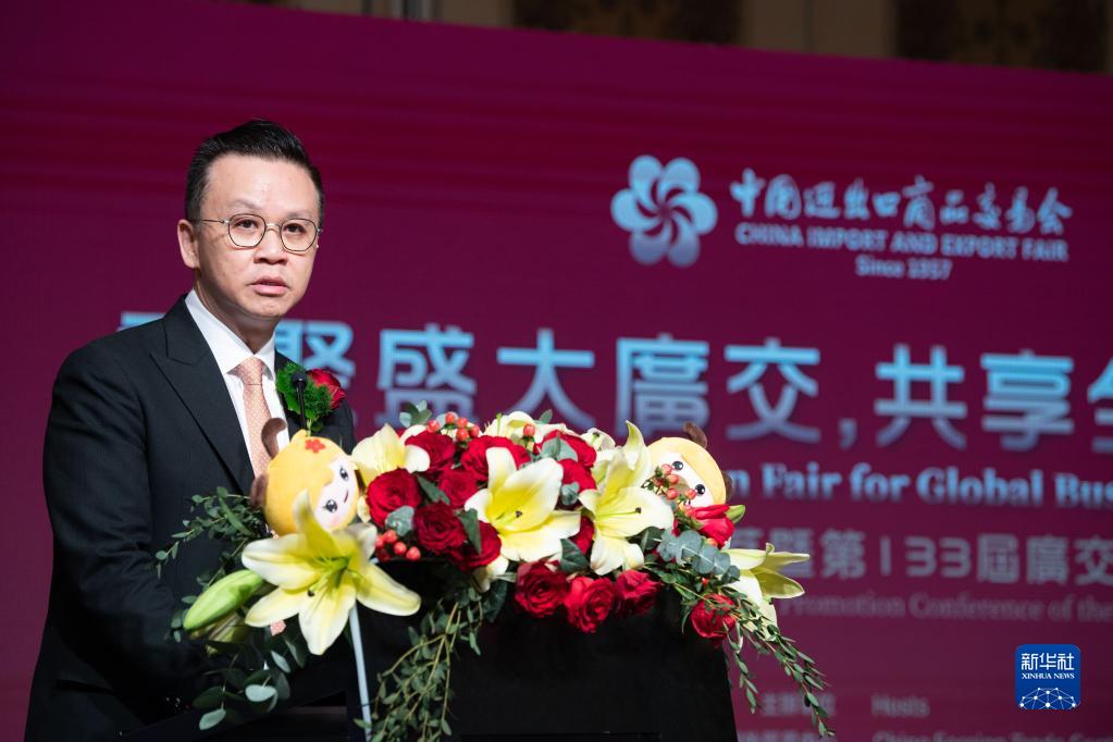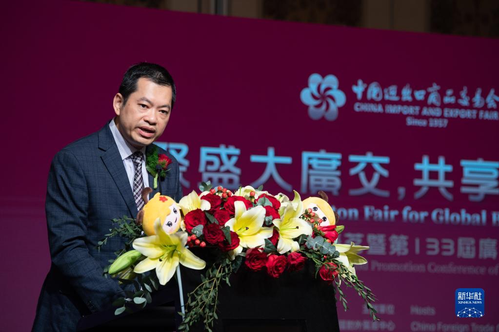3月23日,廣交會副主任兼秘書長、中國對外貿易中心主任儲士家在活動上致辭。新華社記者 張金加 攝