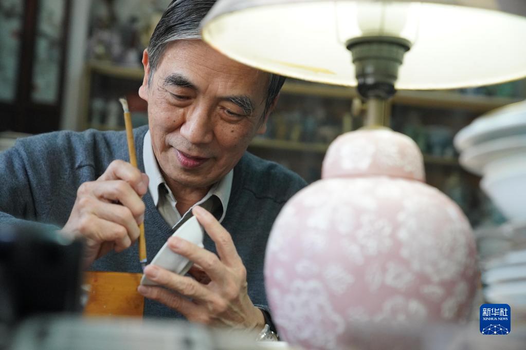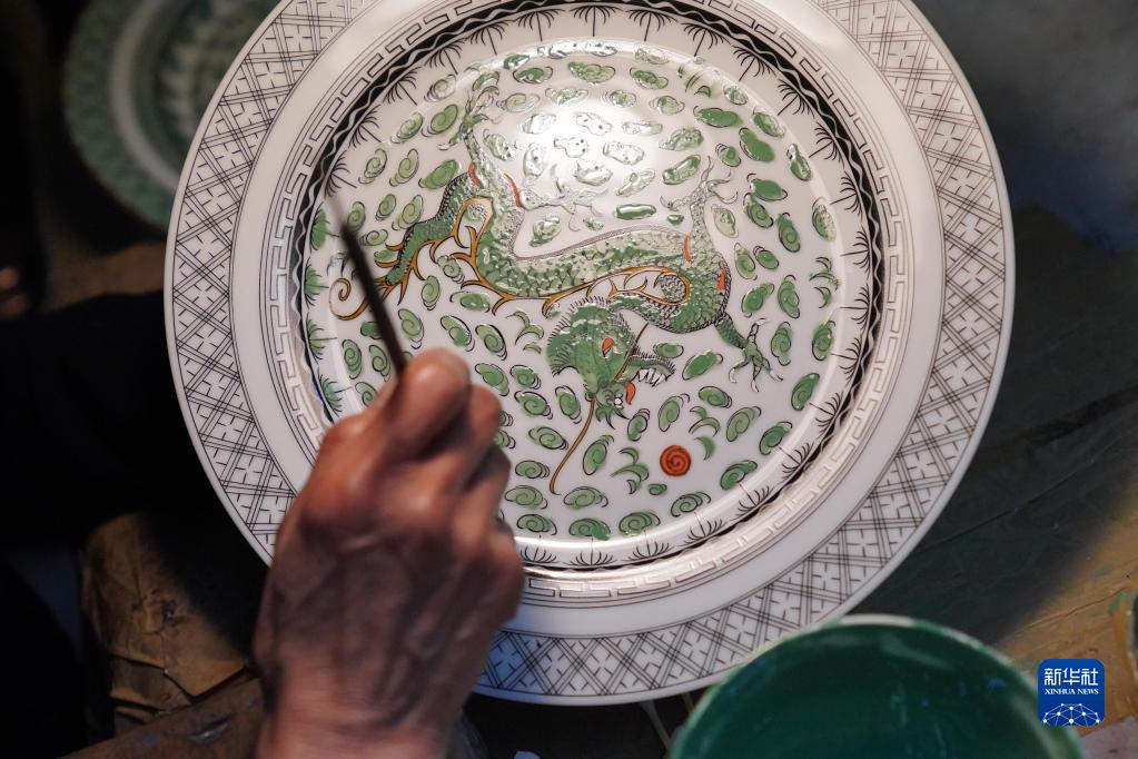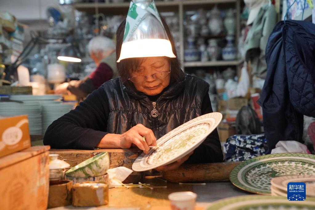 2月24日,廣彩繪工在制作彩瓷。新華社記者 呂小煒 攝