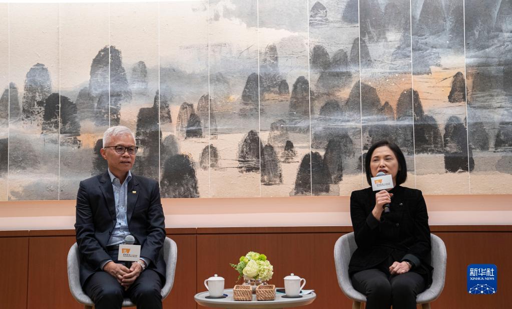 3月17日,西九文化區(qū)管理局行政總裁馮程淑儀(右)、香港故宮文化博物館館長吳志華在接受媒體采訪。新華社記者 呂小煒 攝