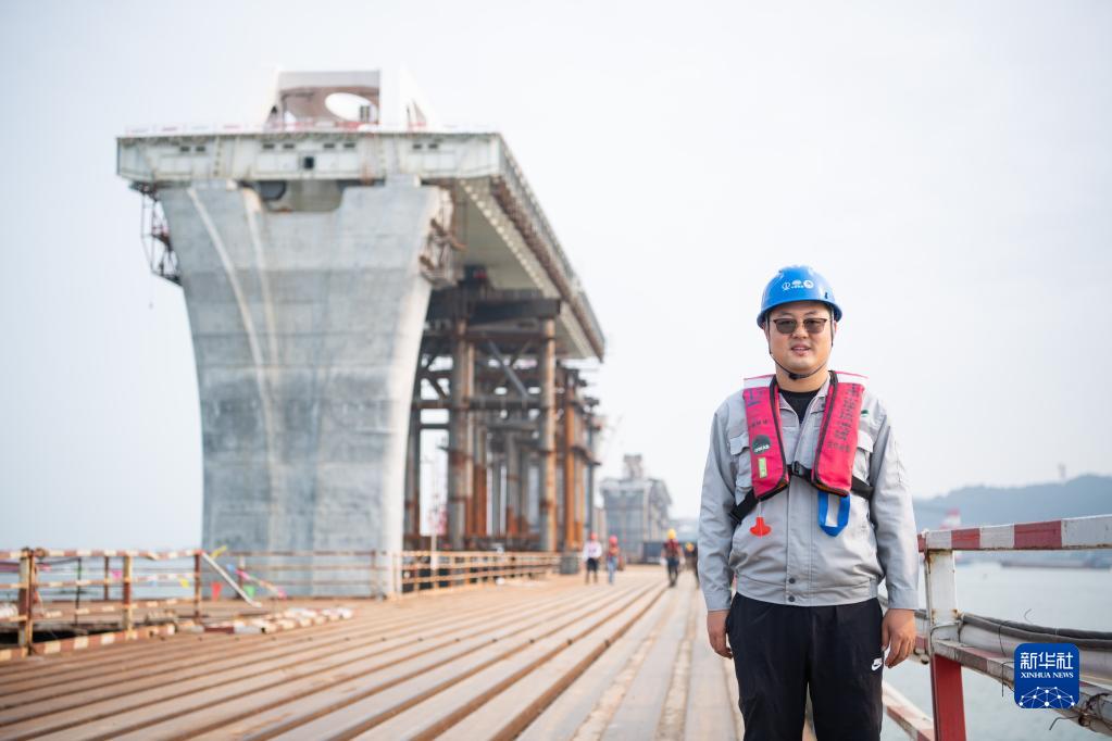 這座大橋由中國土木、中鐵建大橋局、澳馬建筑組成聯營體項目部共同實施。來自山東鄆城的吳光陽2021年9月來到項目部,負責架梁臨時支墩支架現場的施工管理。