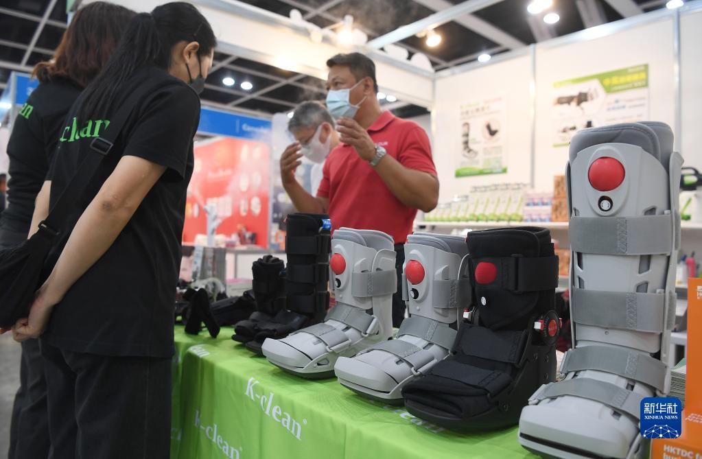 5月16日,參展商在第十四屆“香港國際醫療及保健展”上介紹功能足踝護具。新華社記者 陳鐸 攝