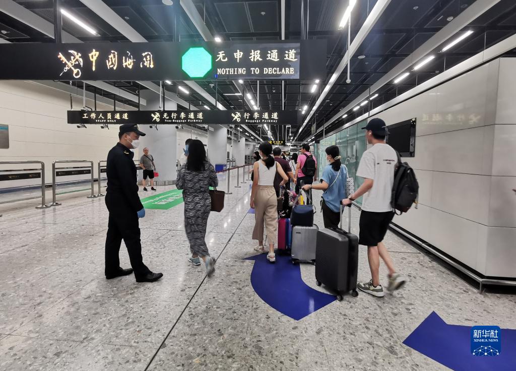從香港西九龍站出發,14分鐘就可到達深圳福田站。深圳海關所屬西九龍站海關副關長張曉東介紹,自今年4月1日廣深港高鐵香港段長途列車服務全面恢復以來,截至6月底,西九龍站口岸日均出入境客流達到5.5萬人次,已超過2019年平均數。“進入7月暑期,日均達到6.5萬人次,7月22日和23日連續兩天接近10萬人次。”