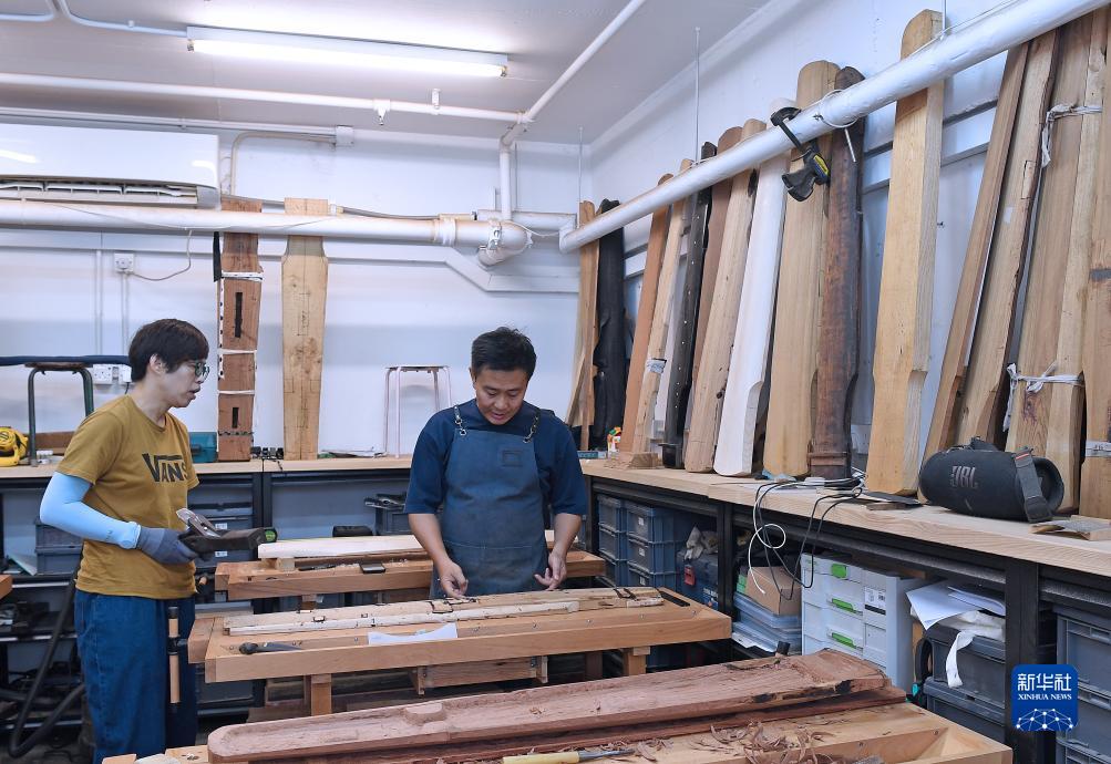 每到周末,位于九龍西部石硤尾的一間約10平方米古琴工作室便熱鬧了起來,銼刀及各種工具的聲音此起彼伏,斲琴匠人不時停下來用手把握琴的弧度,而一旁墻上等待張弦的古琴漆面潔凈無瑕,讓這個充滿古韻的空間顯得很是明亮。