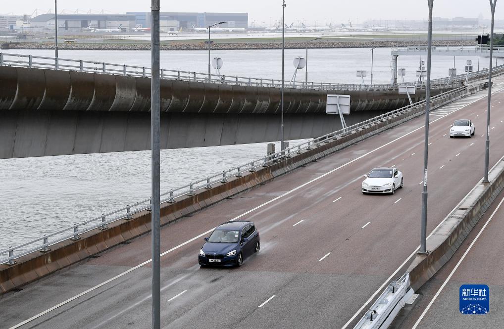 7月1日,車輛行駛在港珠澳大橋香港段。新華社記者 陳鐸 攝