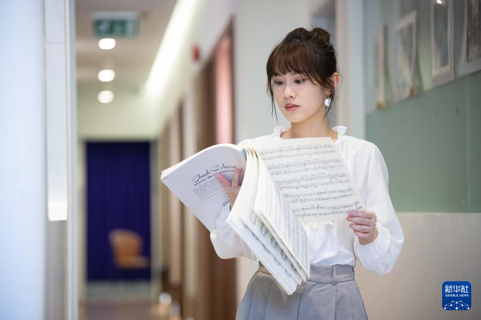 11月12日,澳门青年音乐家陈宜在看琴谱。新华社发(张金加摄)