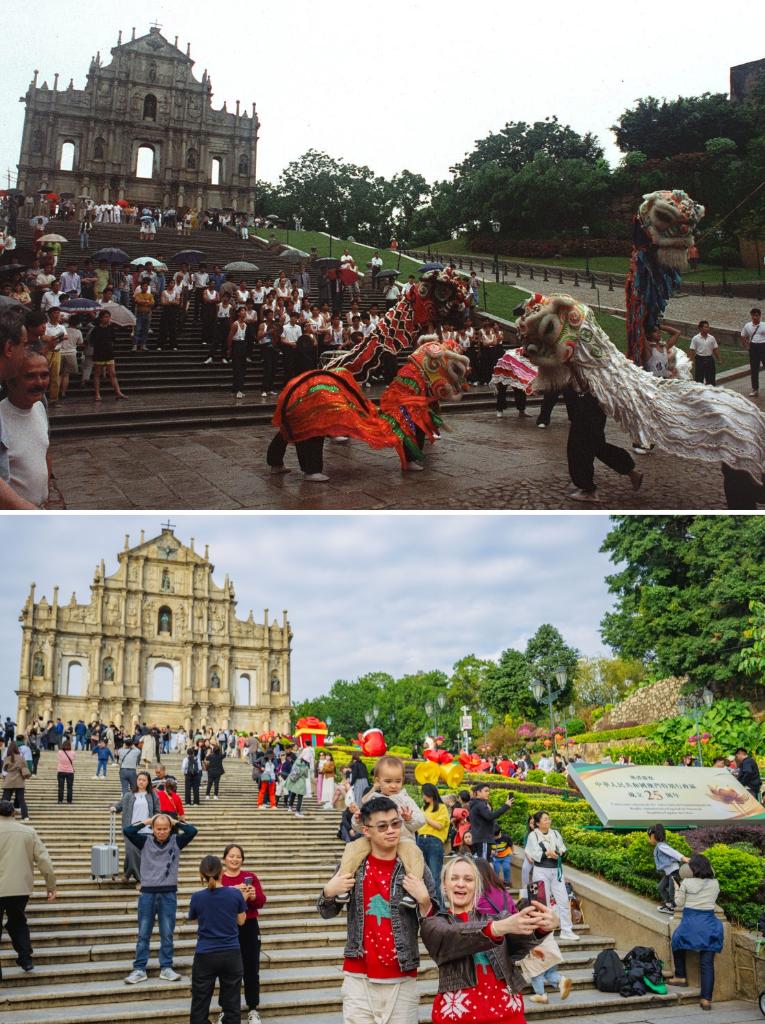 大三巴牌坊(上图摄于1999年,下图摄于2024年)。