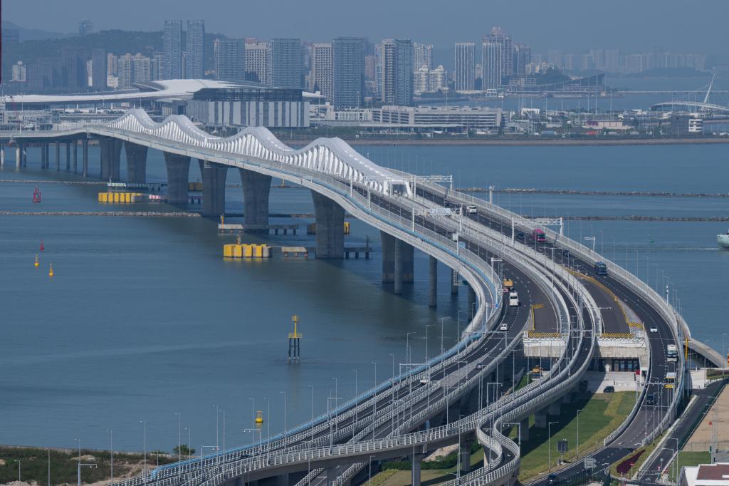 2024年12月1日拍摄的澳门大桥。2024年10月1日,澳门首座双向八车道跨海大桥——澳门大桥正式通车。