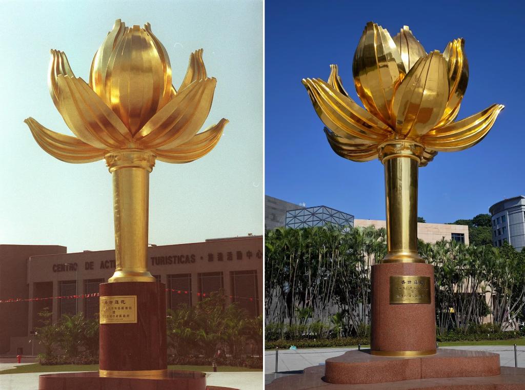 “盛世莲花”雕塑(左图摄于1999年,右图摄于2024年)。