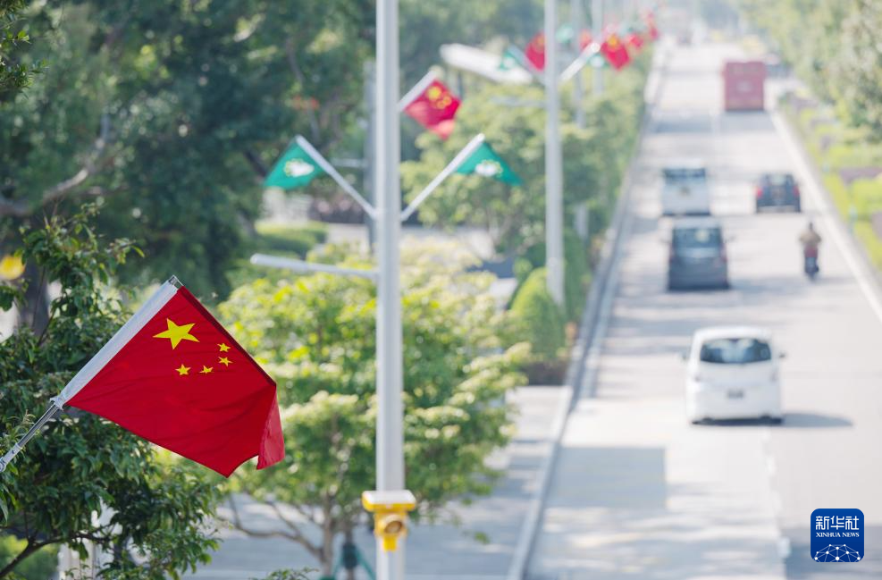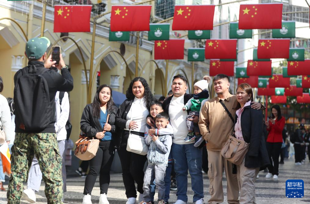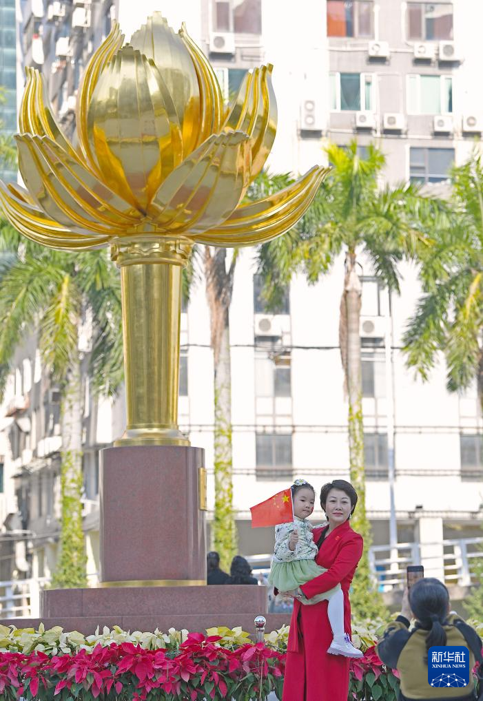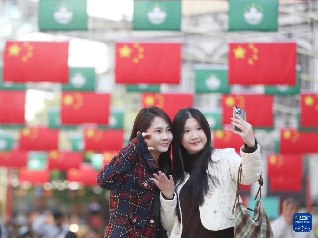 12月20日是澳门回归祖国25周年纪念日。国旗区旗迎风飘扬,澳门处处洋溢着欢乐喜庆的气氛。