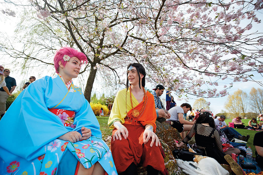 每年4月,柏林世界公园都会举办一场以东亚文化为主题的“樱花节”。节日期间,现场不仅有各式各样的歌舞表演、手工艺展示,还有各类亚洲美食。节日的一大亮点,是众多Cosplayer(也简称为Coser,即角色扮演者)齐聚一堂,在Cosplay比赛中展示他们精心准备的服装和舞台表演。