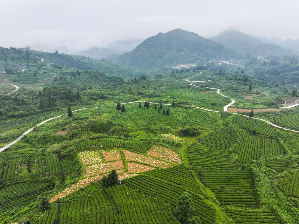 这是5月15日在贵州省江口县怒溪镇骆象村拍摄的抹茶茶园(无人机照片)。