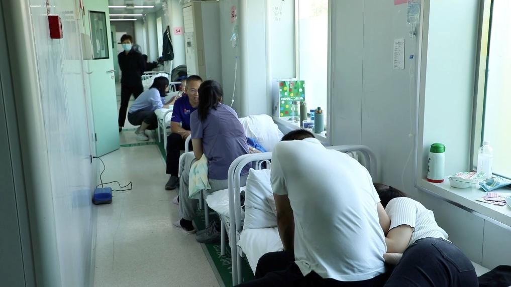記者在現場還了解到,一些經過診斷需要住院治療的孩子,目前只能登記排隊等待床位。據了解,該醫院住院部兒科共開設有3個病區,平均每個病區有固定床位44張,現在最多的加床至90張左右,床位整體利用率高達200%,仍然無法滿足住院需求。