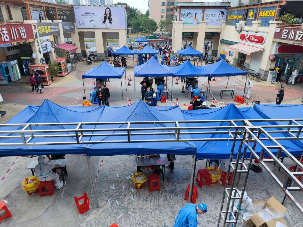 處于南屏管控區(qū)的華發(fā)新城商業(yè)街核酸集中檢測(cè)點(diǎn),現(xiàn)場(chǎng)秩序井然。(康振華攝)